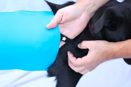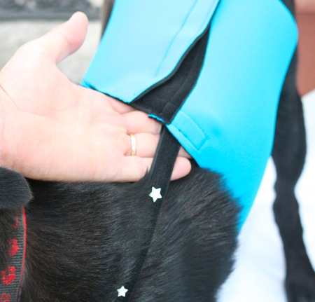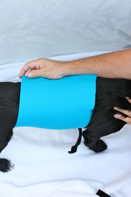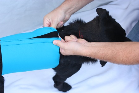 Bandage einfach auf dem Rücken den Tieres zusammen, so das diese gut